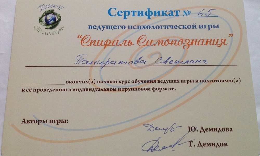 Я прошла обучение в Институте консультирования и системных решений (2013-2015 гг.), курс классической психологии под руководством Андрея Васильева.